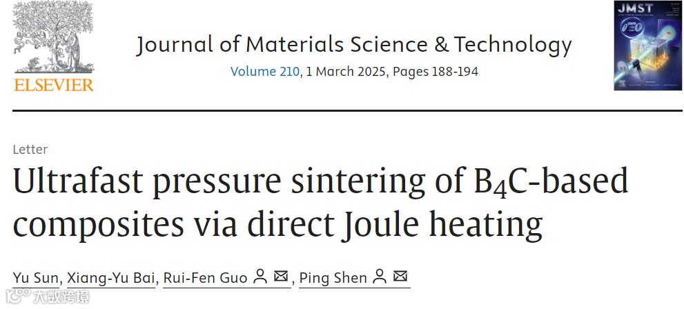 随着先进陶瓷材料在航空航天、防护装备等领域的广泛应用,对其快速、高效制备工艺的需求日益增长。近日,吉林大学沈平教授、郭瑞芬等创新性地采用超快速压力烧结(UPS)技术,实现了B4C基陶瓷在低温快速致密化的技术突破。相关研究成果已发表在《Journal of Materials Science & Technology》,为陶瓷材料的工业化制备提供了全新解决方案。