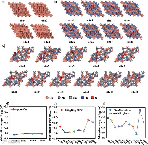 图6和图7展示了不同催化位点的吸附能计算结果,表明Ni0.25Cu0.5Sn0.25催化剂在吸附能分布上具有优势,为后续催化剂的设计提供了新的思路。