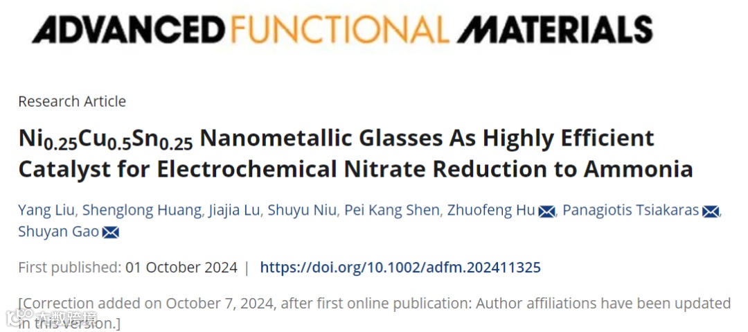 电化学催化是实现可持续化学反应的关键技术之一。河南师范大学的研究团队通过创新的两步焦耳加热法,合成了一种新型Ni0.25Cu0.5Sn0.25纳米金属玻璃催化剂,展现出卓越的电化学性能,为电化学硝酸还原制氨提供了新的思路。