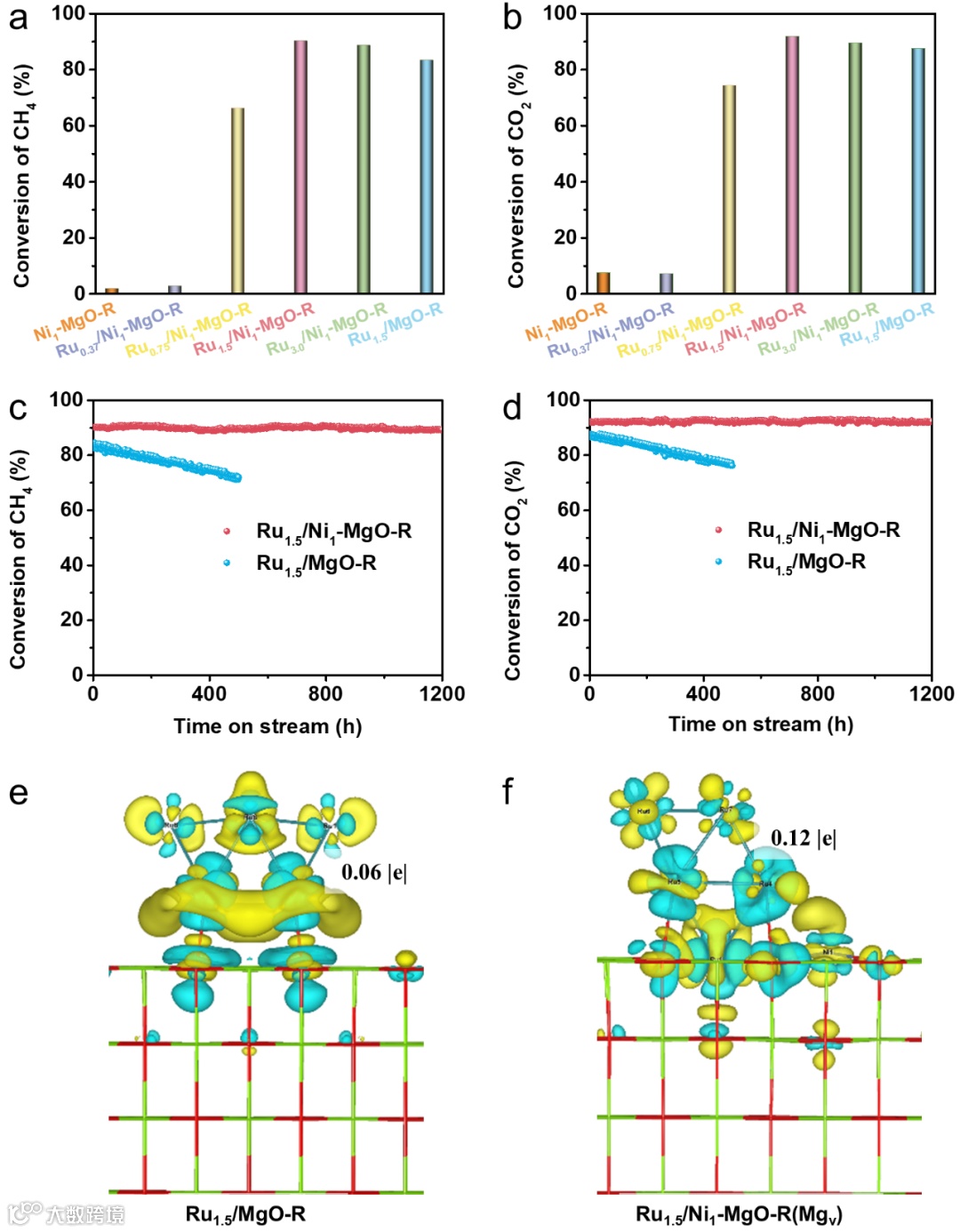 卓越的催化性能:制备的Ru1.5/Ni1-MgO-R催化剂在800℃连续运行1200小时后,CH₄和CO₂转化率仍保持90%以上,展现出前所未有的稳定性。 -