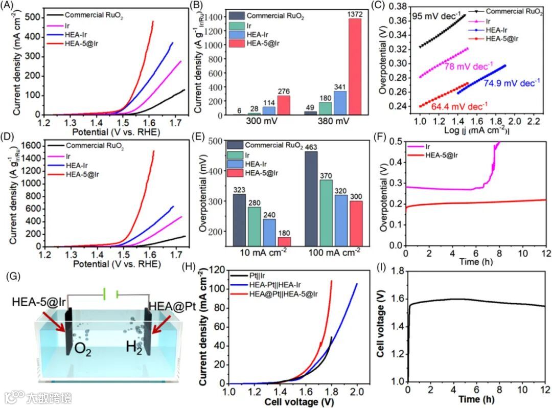 图5:HEA@Pt催化剂的OER与全水分解性能