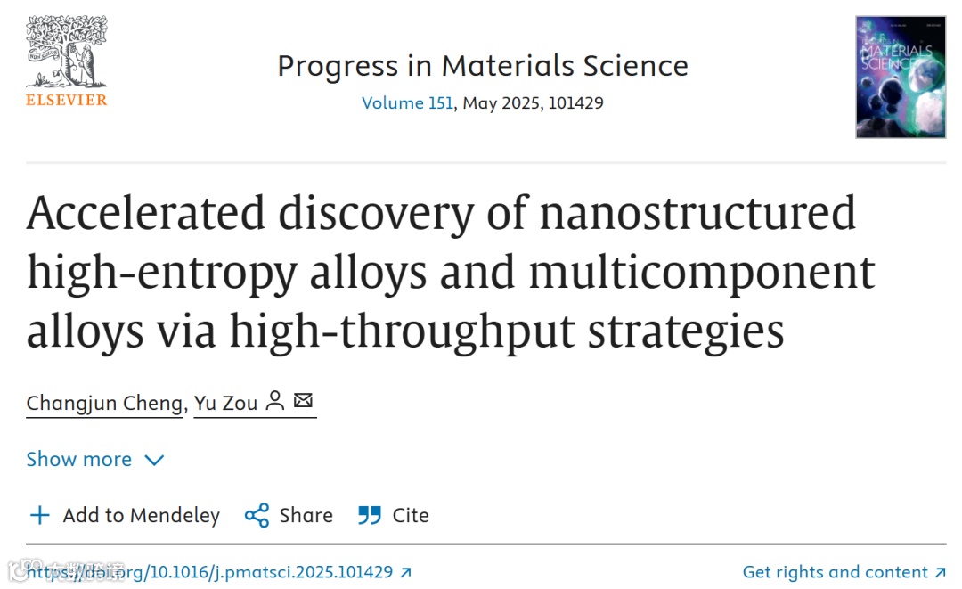 全面涵盖近期可用于开发新型纳米结构高熵合金及相关多组元合金的高通量方法,包括理论筛选、模拟和机器学习等数据分析方法,为未来研究提供多元技术路线。
