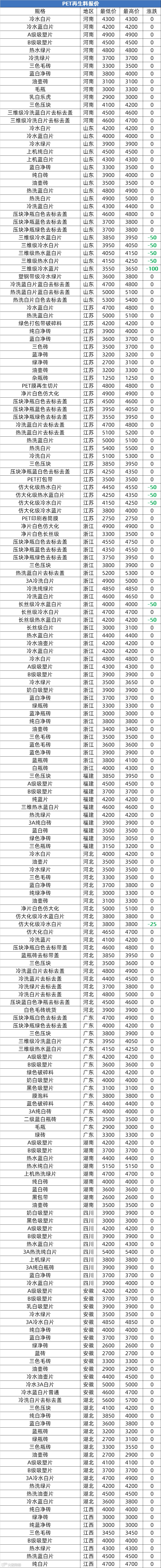 期货高开偏下震荡,上午市场报盘维持震荡幅度-30/50元/吨。美联储降息预期活跃资金热度,国内检修密集缓解市场供需压力。短期市场因供需压力导致市场对未来需求估值偏弱,市场谨慎让利出货为主。短期供需与成本博弈,预计近期市场弱势区间弱势震荡为主。截至午盘,华东拉丝主流在6780-6950元/吨。再生塑料市场呈现震荡调整格局,供需基本面仍是核心矛盾。短期下游订单需求小幅提振带动,同时再生颗粒产品受区域供需差异影响,为市场提供结构性机会。目前生产企业盈利情况仍不及预期,但订单开工趋稳,预计市场价格延续区间整理走势。