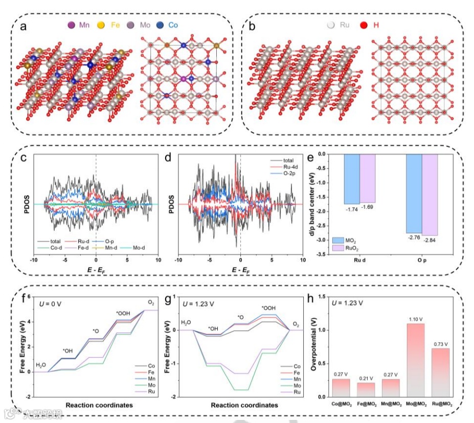 图4:酸性OER的RuMnFeMoCo电催化剂的DFT计算
