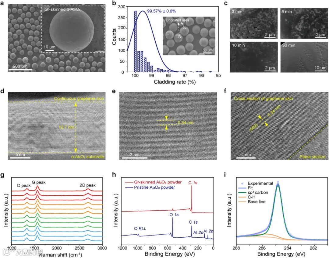 SEM/TEM等表征清晰展示:石墨烯层连续、完整、高结晶度地包裹 Al₂O₃ 颗粒,效果均匀可控。
