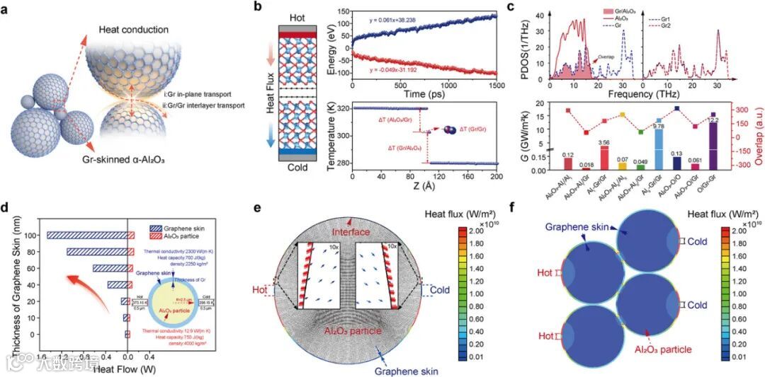 理论模拟 (图3): 揭示石墨烯层如何大幅提升界面热导(Gr/Gr 和 Al₂O₃-O/Gr 界面是关键)。