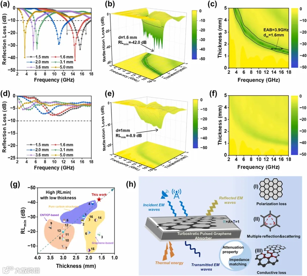 图5和图6详细描述了tPG材料在不同添加量下的电磁波吸收性能,证明了该材料在电磁波吸收领域的巨大潜力。