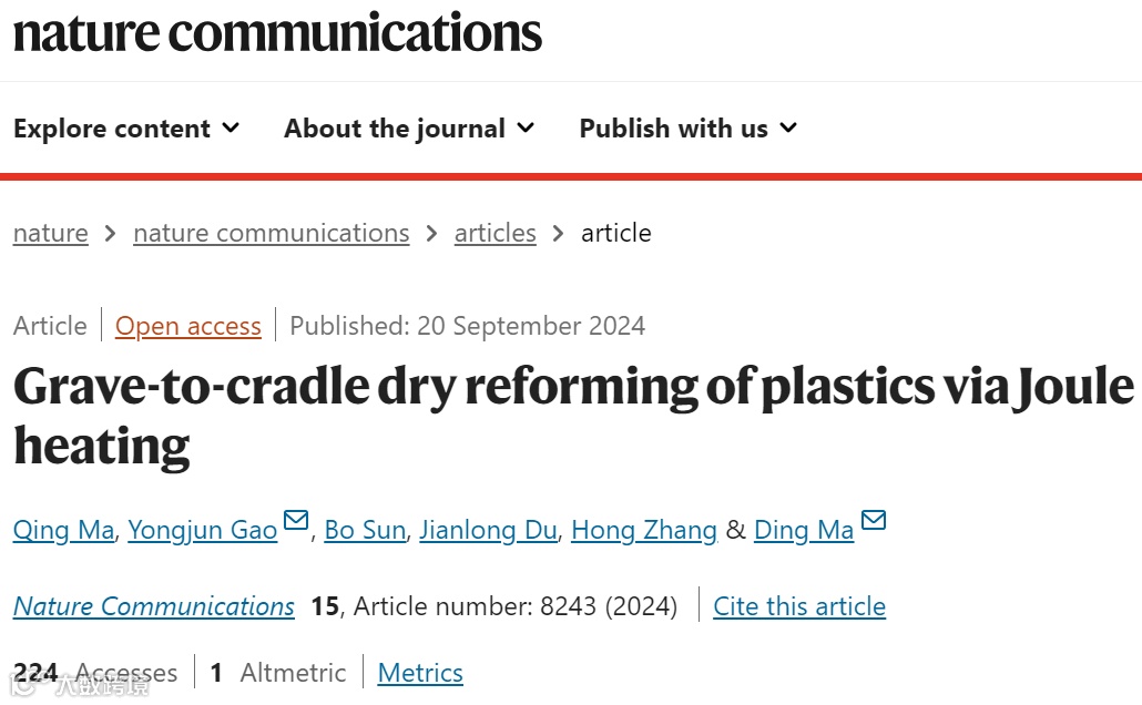 Qing Ma, Yongjun Gao, Bo Sun, Jianlong Du, Hong Zhang & Ding Ma. Grave-to-cradle dry reforming of plastics via Joule heating. Nat Commun 15, 8243 (2024). https://doi.org/10.1038/s41467-024-52515-y