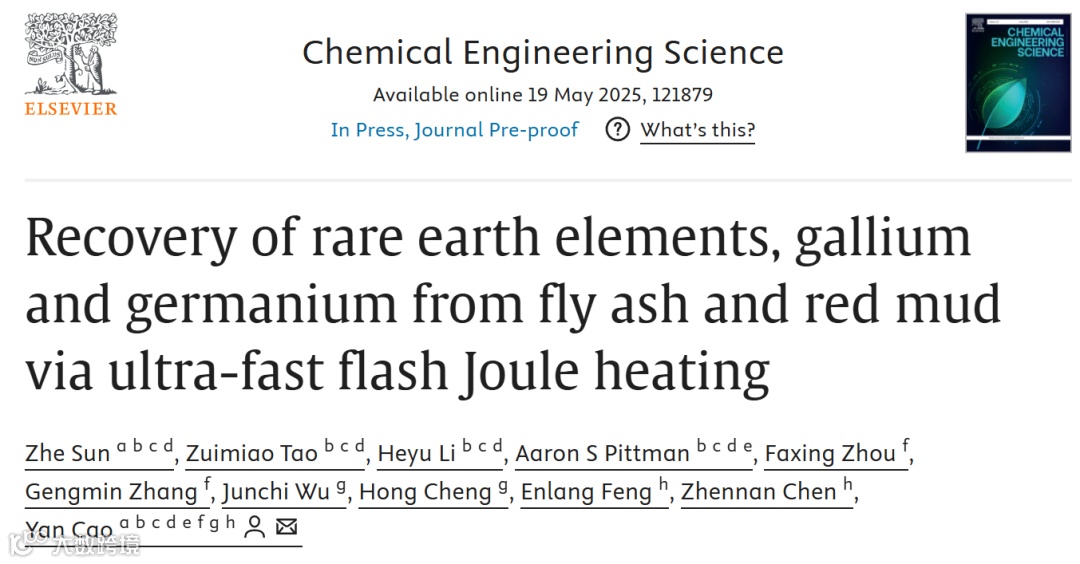 令人振奋的是,2025 年 5 月 19 日,中国科学院广州能源研究所曹晏研究员在《Chemical Engineering Science》上发表了一项意义重大的研究成果。他们采用闪蒸焦耳加热(FJH)技术来处理粉煤灰与赤泥。这一技术通过在瞬间达到 2000 - 3000℃的超高温,触发硅铝晶格重构,再结合酸浸工艺,实现了稀土、镓和锗的高效回收。