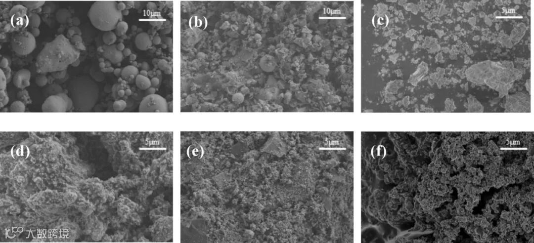 图 6 通过扫描电镜(SEM)展示了活化处理对材料微观结构的影响。焦耳加热后的粉煤灰表面形成多孔网状结构,赤泥颗粒呈现均匀孔隙与清晰边界,而碱熔处理样品结构松散,这种高孔隙率为酸浸试剂渗透提供了更多接触面,提升了元素提取效率。