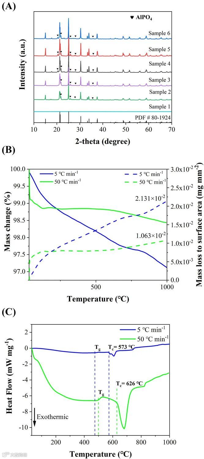 研究中,UHS技术以极短时间完成了传统炉式加热需要数小时才能完成的任务。通过UHS工艺,研究团队在16分钟内完成了GeO2、Al(PO3)3和LiPO3混合粉末的熔融淬灭及LAGP玻璃陶瓷的结晶。相比于传统方法,该技术在显著缩短生产周期的同时,优化了材料性能。UHS工艺制备的样品结晶度高达90%,离子电导率提升至1.31 × 10^-4 S cm^-1,大幅领先于传统样品。