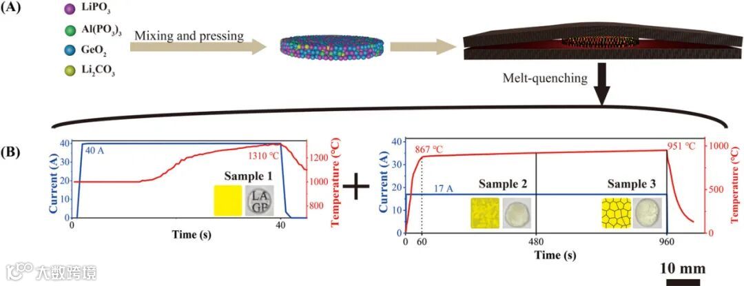 为应对上述挑战,西南交通大学研究团队开发了一种全新的超快速高温烧结(UHS)技术。该技术通过单步快速加热,实现LAGP玻璃陶瓷的高效结晶,从根本上颠覆了传统工艺。