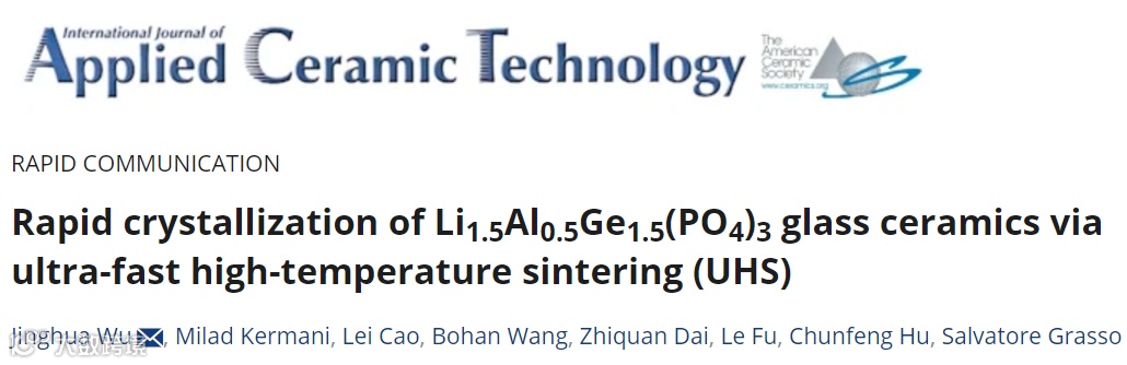 通过UHS技术,研究团队显著提升了LAGP玻璃陶瓷的制备效率和性能,为全固态电池的商业化奠定了坚实基础。这一成果发表在《International Journal of Applied Ceramic Technology》上,不仅为学术界带来了技术创新,也为产业界提供了实用参考。