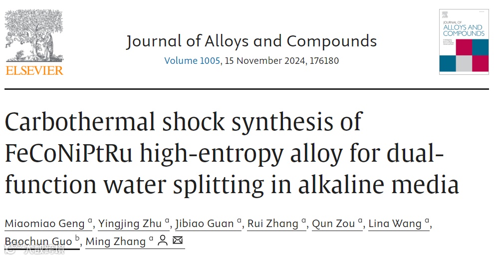论文名称:Carbothermal shock synthesis of FeCoNiPtRu high-entropy alloy for dual-function water splitting in alkaline media