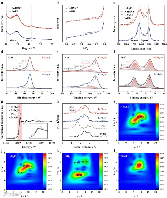 本次研究中,官轮辉团队通过一步快速焦耳热冲击法,成功制备了纳米Pt5Ce合金嵌入氮掺杂空心介孔碳球的催化剂。该催化剂的Pt-C配位层有效提升了其在氧还原反应(ORR)中的活性和稳定性。实验数据显示,E-Pt5Ce催化剂的质量活性(MA)和比活性(SA)分别高达2.86 A mgPt-1和2.03 mA cm-2,远超传统Pt/C催化剂。
