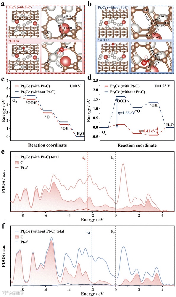 图5则通过DFT计算揭示了E-Pt5Ce催化剂的优异性能机理