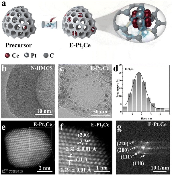 图1展示了E-Pt5Ce催化剂的合成过程和纳米结构