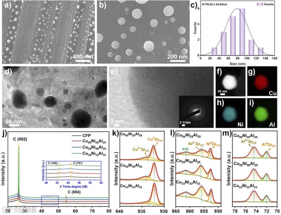 SEM和TEM图像显示催化剂均匀分布,并确认其非晶态结构。