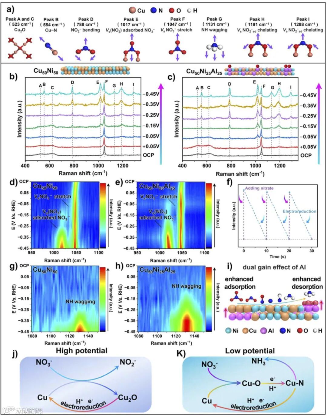 研究通过原位电化学拉曼光谱揭示了高电位与低电位区域的不同反应机理,为催化剂的设计提供了新思路。