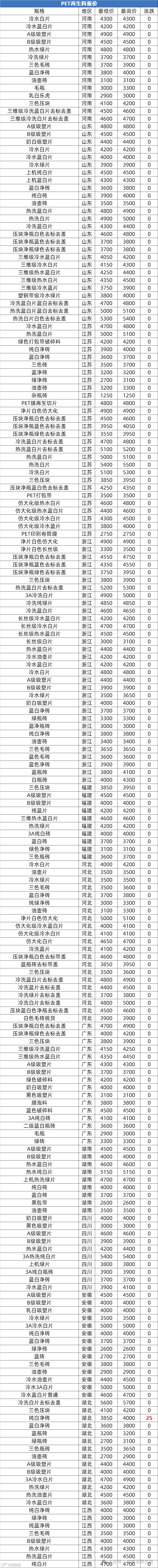 智采小工单再生塑料市场多呈平稳或震荡态势。再生PVC软硬质料多平稳盘整,成交清淡;再生PP期货高开震荡,短期弱势(华东拉丝6780-6950元/吨),再生料区间整理。再ABS多地报盘稳,需求疲弱,实单议价。再生PE价稳(山东 EVA 粒6000-6200元/吨),新旧料价差窄,需求弱,低位盘整。再生 PET 江浙稳、局部跌 100 元,供需博弈料偏弱;再生 EPS 稳为主,局部或小涨,环保有支撑。