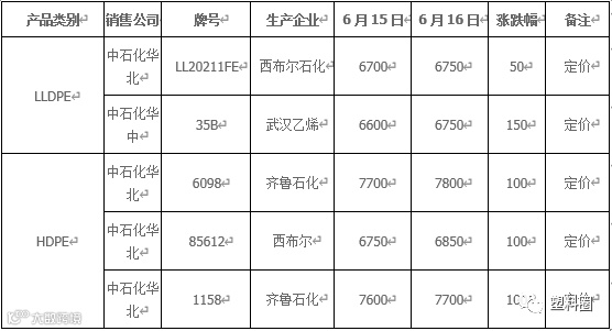 表2 石化出厂价格调整一览表(单位:元/吨)