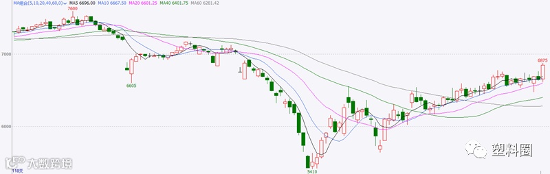 今日国内PE市场价格部分走高,上涨幅度多在50-150元/吨左右。今日石化PE出厂价格部分上调,中石化华东、中石化华中、中油华北、中油华南及中石化华北等石化大区先后调涨PE出厂价格。塑料期货高开震荡上行,提振现货市场交投气氛,加上石化价格上调,商家心态向好,多随行就市出货为主,价格跟随走高。终端工厂询盘积极性有所提升,多按需采购为主。从供应方面来看,当前石化装置检修较多,石化库存继续回落,后期石化供应有望进一步减少。国内LLDPE主流市场价格在6800-7000元/吨;LDPE主流市场价格在7600-8100元/吨;HDPE膜主流市场价格在7550-8100元/吨。
