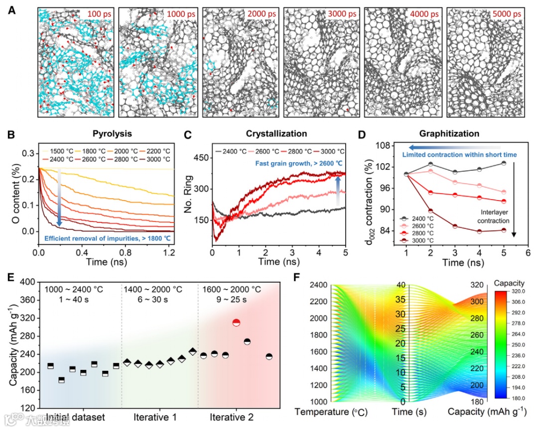 (F) 经过两次迭代后,对负极容量的预测:体现机器学习在精确调控碳化过程中的重要作用。