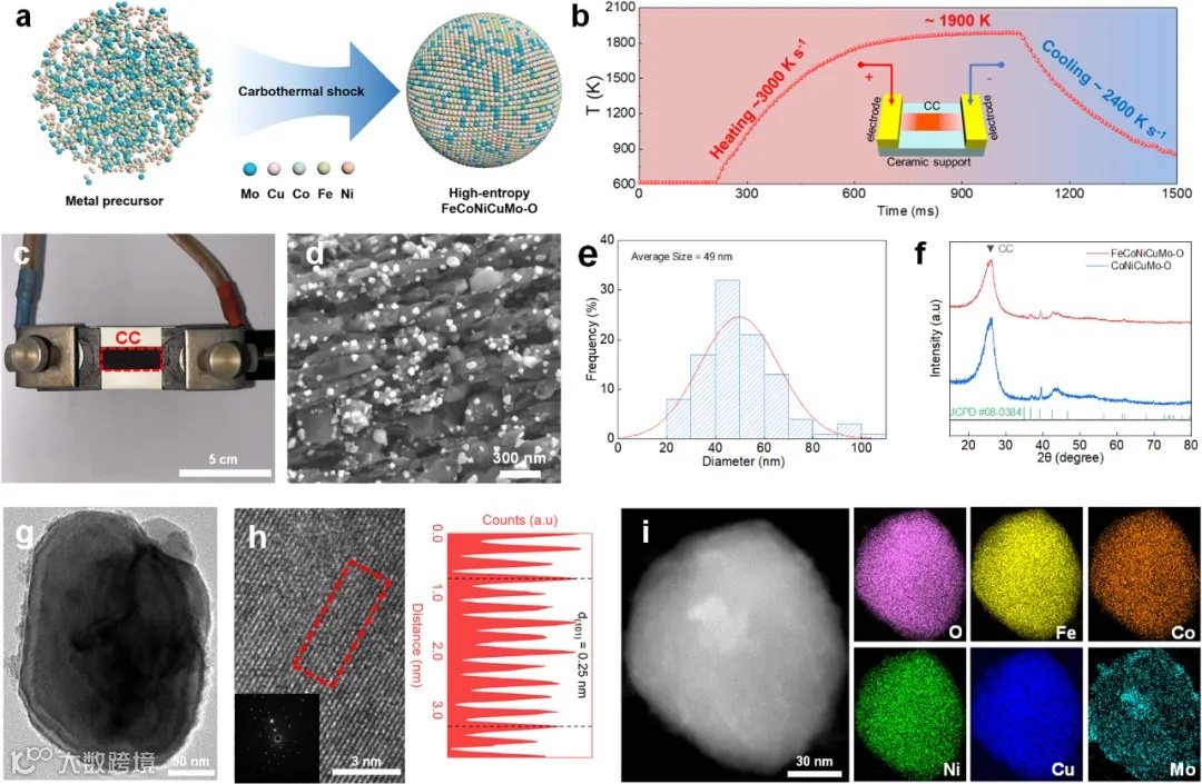 图1b:碳热冲击(CTS)过程的温度曲线,表明处理温度高达2000 K,有助于实现均匀分布和高熵相的形成。 -