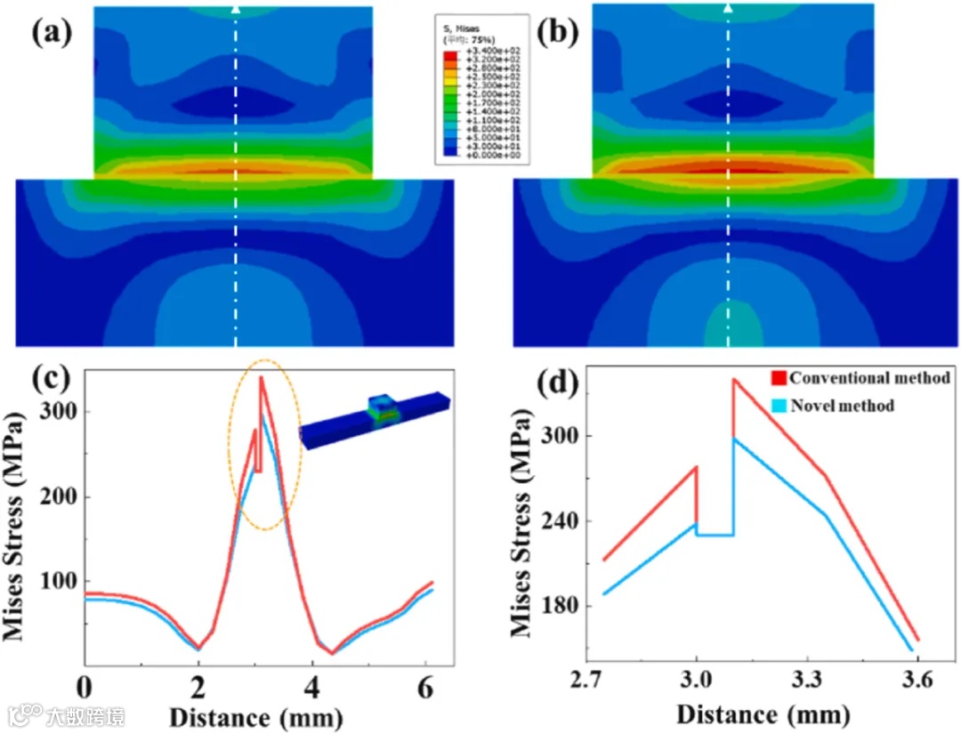 图11展示了C/C-TC4接头的残余应力分布。通过有限元模拟,发现UHS连接过程中形成的非平衡温度场有效降低了残余应力。