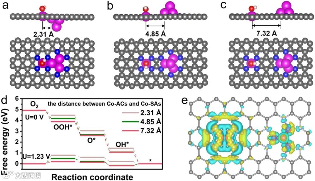 研究通过密度泛函理论(DFT)计算,揭示了Co-ACSAs中不同活性位点的吸附特性。结果表明,Co-ACs和Co-SAs之间的电子调制作用使其在海水电解质中表现出卓越的催化性能(图1)。