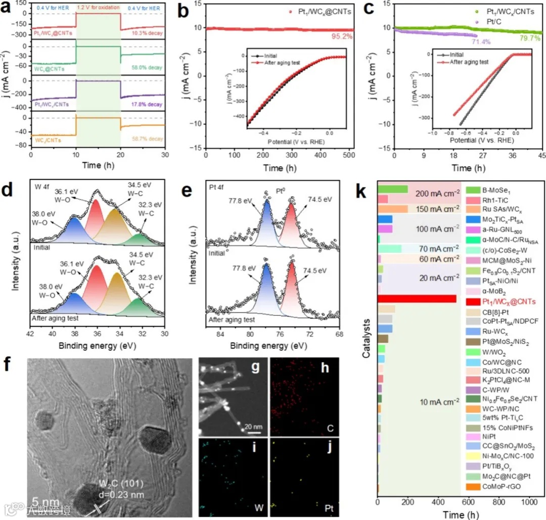 图5:Pt1/WCx@CNTs的长期稳定性测试