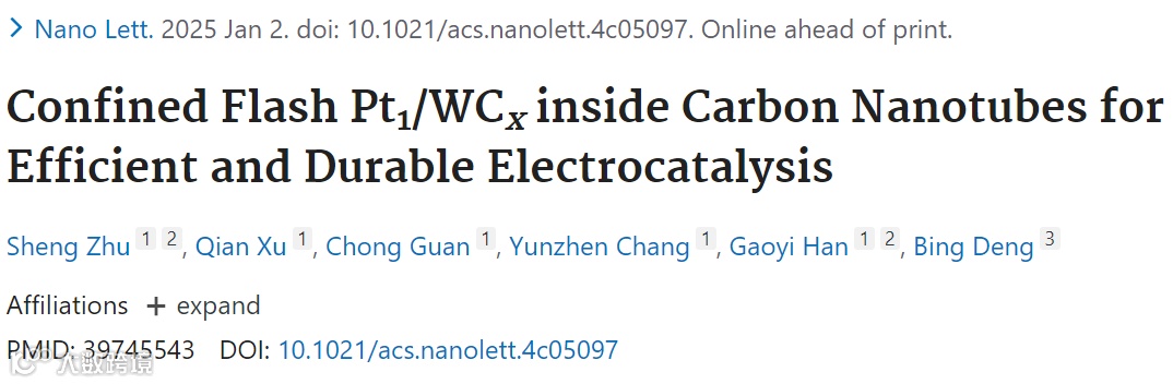 2025年1月2日,清华大学邓兵研究员与山西大学朱胜研究员共同发表在《Nano Letters》期刊上的研究成果,提出了一种新型的高效链甲催化剂——Pt1/WCx@CNT。该催化剂通过创新的限制性闪蒸焦耳加热(CFJH)技术合成,成功地将孤立的铂原子稳定锚定在碳纳米管内的钨碳化物纳米结构上。研究表明,该催化剂在酸性电化学析氢反应(HER)中,展现了卓越的催化性能和极长的耐久性,突破了传统铂基催化剂的限制,为氢气制备提供了新方案。