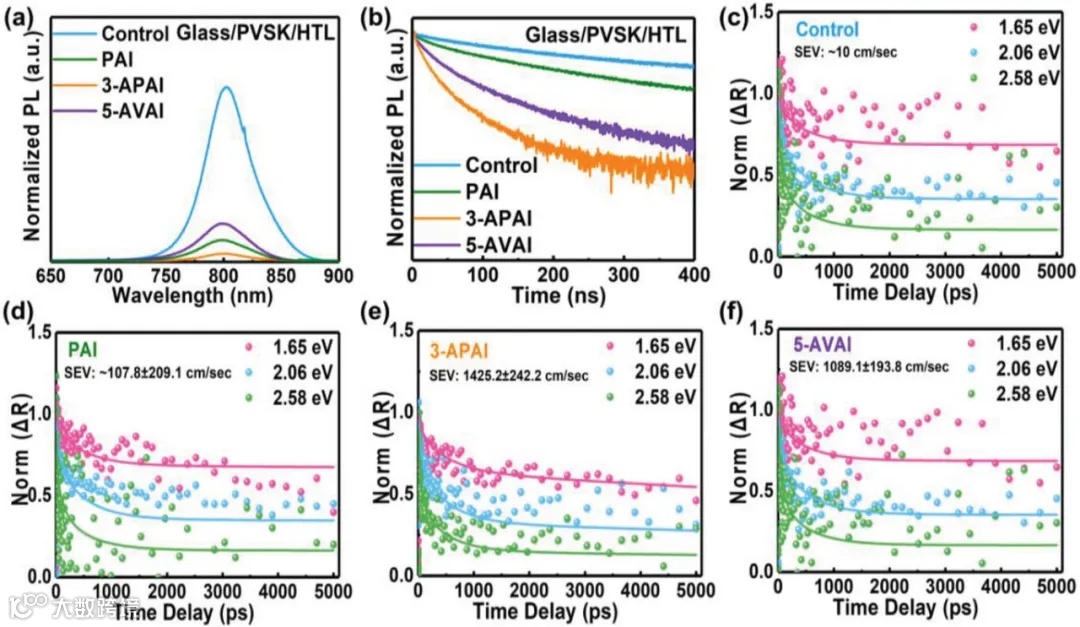 结果表明,3-APAI处理后(图4e)薄膜表面提取效率最大,表面载流子提取最快。