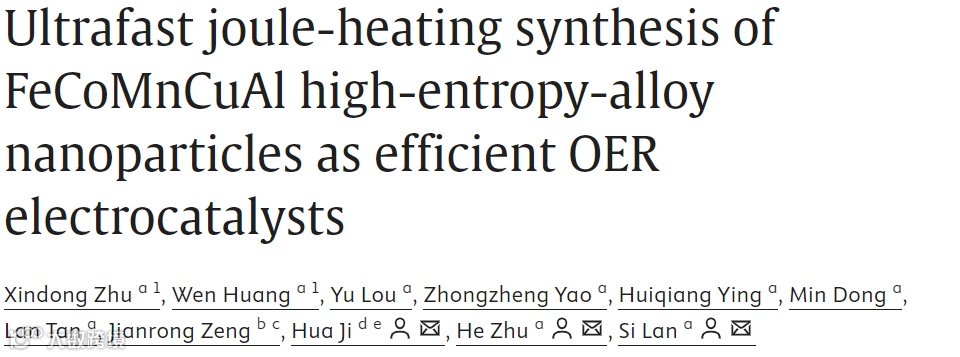 南京理工大学课题组通过高温冲击技术制备的 FeCoMnCuAl 高熵合金纳米颗粒展示了优异的 OER 电催化性能,这项研究不仅为高效、经济的无贵金属催化剂提供了新选择,也为清洁能源转化应用的商业化带来希望。