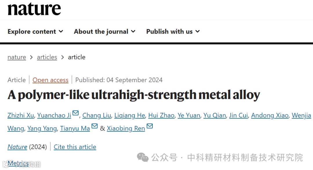 Xu, Z., Ji, Y., Liu, C. et al. A polymer-like ultrahigh-strength metal alloy.Nature(2024).