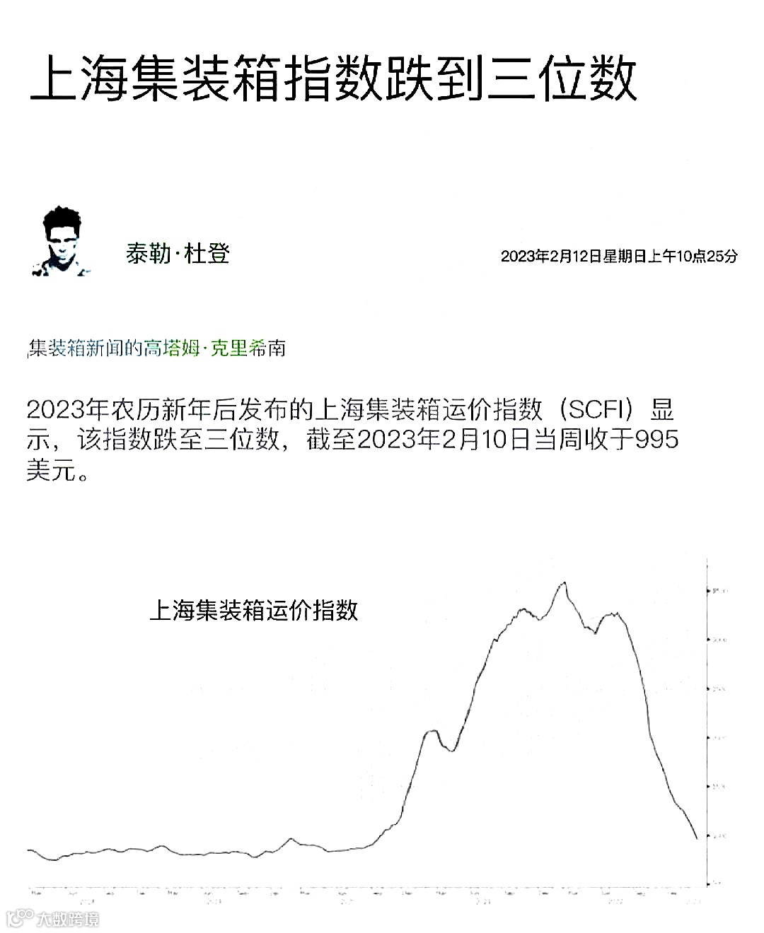 供过于求的行情下,受到影响的还有集装箱价格。2022年12月20英尺标准集装箱新造价格降至2000美元,是2020年1月以来最低,只有2021年6月的一半左右。考虑到集运公司可能不会再订购新集装箱,加上钢铁材料成本下跌,未来集装箱价格可能续跌至1500美元左右。