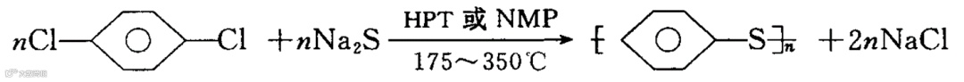 美国菲利普斯成功研制出了采用对二氯苯和硫化钠为原料,在极性有机溶剂N-甲基吡咯烷酮(NMP)中进行溶液缩聚合成聚苯硫醚的方法。