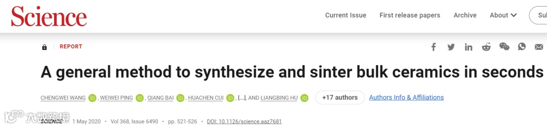 陶瓷因其高的热稳定性、机械稳定性和化学稳定性而广泛应用于电子、储能和极端环境。传统的陶瓷烧结往往需要数小时的加工时间,这可能成为高通量发现先进陶瓷材料的障碍。在此,本文报告了一种称为超快高温烧结(UHS)的陶瓷合成方法,该方法具有温度分布均匀、高升温(~103 ~ 104℃/min)、高冷却速率(高达104℃/min)和高烧结温度(高达3000℃)的特点。超高速的加热速度和温度使烧结时间达到了10秒左右,远远超过了大多数传统炉的烧结速度。