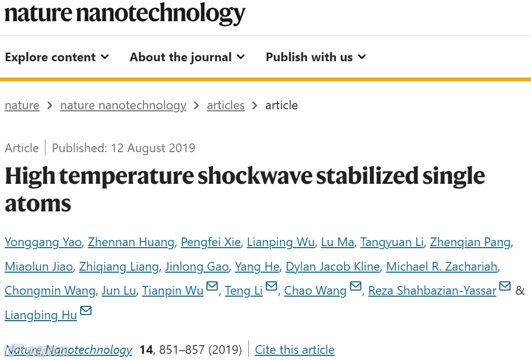 单原子催化剂具有独特的配位环境和最大的原子利用率,在很多反应中表现出极好的性能。尽管高温可以促使金属原子与基体之间形成键增强其稳定性,然而由于热力学会促使原子聚集形成纳米粒子,因此,在高温下合成单原子催化剂仍然是一个很大的挑战。本文作者利用可控高温冲击波通过周期性的开-关,在高温下(1500K-2000K)合成并稳定了单原子。这种快速加热-冷却的方法可以将金属纳米粒子分散成单原子,而且具有极好的稳定性。