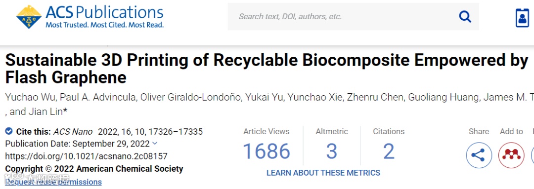 作为一种新兴制造技术,3D打印提供了高度的设计自由度和高效的产品开发效率。但用于打印高性能3D结构的可回收可再生油墨的开发仍是一项巨大的挑战。在此,研究人员制备了可作为3D打印油墨的FG/大豆油基生物复合材料。该材料可用于轻质声学元结构等的制造,打印的3D结构在承重和消音等应用中表现出良好特性,并可节约原料的使用。其中,FG可改善材料的机械性能和打印适性;材料的碳源来自二氧化碳,并可通过闪蒸焦耳加热(FJH)技术实现循环利用。