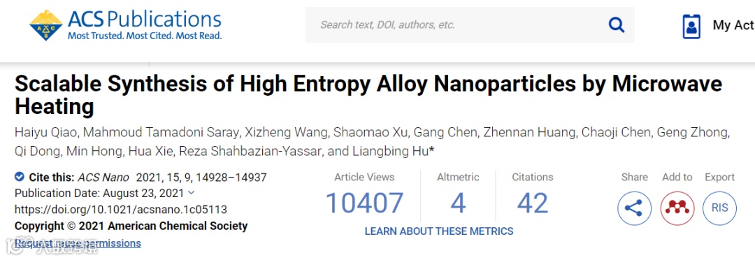 高熵合金(HEA)是一种新兴的材料。就其合成而言,由于大多数金属元素在热力学平衡条件下不发生相溶,因此传统的湿式化学方法通常会导致元素相分离。实现均匀混合的五种元素通常需要使用极高的温度,其次是“冻结”这个非平衡状态的快速冷却速率>103 K/s。然而,传统炉加热只能达到∼1300 K,加热/冷却速率只有几十到几百K/min。此外,很难保证从表面到炉中心的温度均匀性,可能导致纳米颗粒的元素或相分离。为了克服这些限制,人们正在开发不基于传统熔炉的快速加热方法,以合成非平衡材料。微波加热是诱导热能的一种有效方法,已被用于合成有机和高质量的碳材料、以及碳负载纳米材料。在此,本文报道展示了一种简便、高效和可规模化的微波加热方法,用于在不同尺寸的碳基衬底上合成HEA-NPs。这种微波加热方法具有超高温度、加热分布均匀、加热冷却速度快、适用于不同尺寸的碳材料、成本效益等优点。鉴于上述优点,这种微波辐射诱导焦耳加热方法在可扩展生产纳米材料中具有很高的潜力。