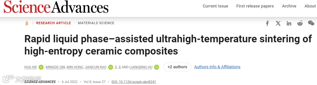 众所周知,高熵陶瓷及其复合材料显示出高机械强度和高温稳定性。然而,强共价键特性和低自扩散系数等特性使它们难以烧结,限制了它们的大规模普及。在此,本文提出了一种快速液相辅助的超高温烧结策略,并使用高熵金属二硼化物/碳化硼复合材料作为概念验证,其可以提高高熵、高温陶瓷的致密性,而不会失去其高熵结构。其中,本文使用的加热陶瓷的温度高于传统熔炉或热压(~2500 K)所能达到的温度,但低于通过电弧熔化等技术达到的超高温(~3300 K),这有助于促进有效的致密化但没有完全熔化材料,因此保留了高熵结构。