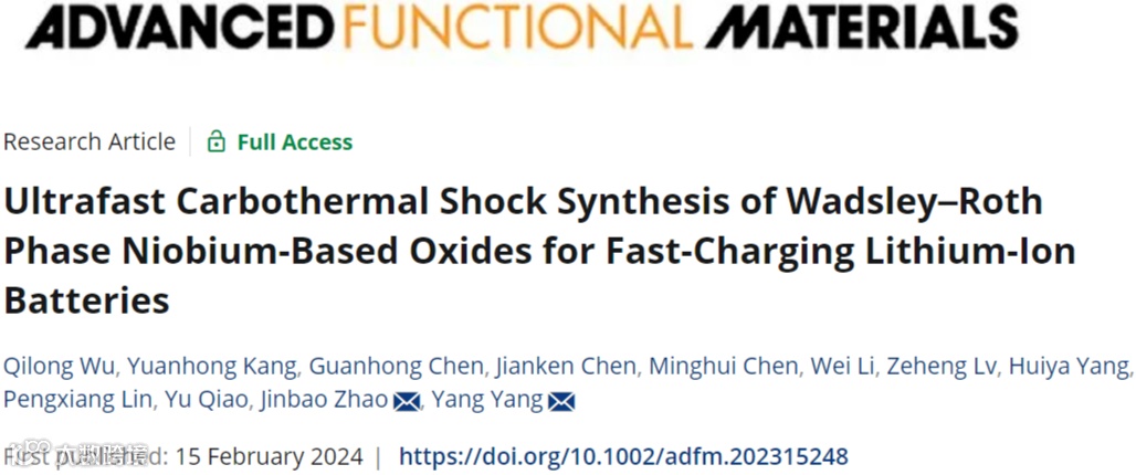 由于传统石墨阳极的镀锂问题和有限倍率能力,快速充电锂离子电池(LIB) 的部署面临重大挑战。Wadsley-Roth相Nb基氧化物因其独特的开放框架晶体结构、多电子转移(每个金属原子≥2个)和安全的锂化平台(1.0~1.5 V vs Li+/Li)而成为快充LIB的潜在负极材料。然而,传统的合成方法不可避免地需要耗时耗能的退火过程,导致生产效率低下。在热冲击的过程中,超快加热速率(104-105 K min-1)将传统方法中缓慢的固态过程转变为快速的液相参与的反应过程机理,并驱使化学反应远离平衡,从而在材料中引入氧空位和位错,并且使颗粒纳米化,这有利于提升材料的电化学性能。CTS技术提供的超快冷却速率(103-104 K min-1)缓解了通常由高反应性Nb2O5液相引发的颗粒烧结问题。通过理论计算证明,氧空位的存在降低Li+扩散能垒并提高电子电导率。此外,位错有助于将Li+插层产生的表面拉应力转化为压应力,从而有效提高循环过程中的电极结构完整性。利用这种方法,在30s内合成了一系列的Wadsley-Roth相负极(Nb14W3O44、TiNb2O7、Ti2Nb10O29、TiNb24O62和AlNb2O29)和主流的正极材料(LiFePO4和LiMn2O4)。