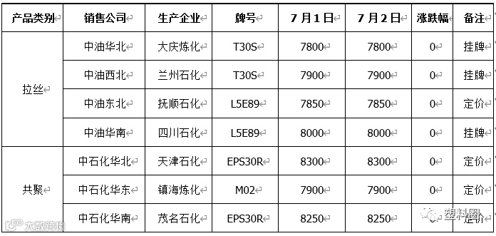 关注石化出厂价格、