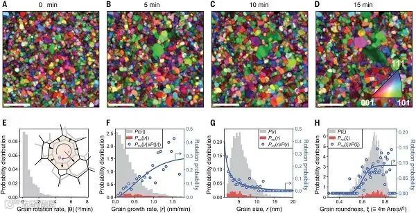 图3:晶粒生长与旋转的微观结构观察 © 2024 AAAS
