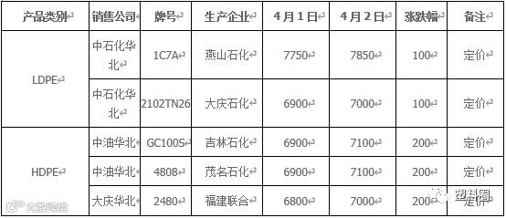 表2 石化出厂价格调整一览表(单位:元/吨)