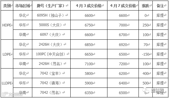 表1 我的塑料网(www.myplas.com)PE市场成交价格(单位:元/吨)
