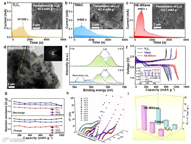 HE-MXene的多金属位点带来了原子级别的晶格弹性,使得材料可以通过d带工程和电子结构的协同调节,优化对LiPSs的吸附和催化性能。这种“鸡尾酒效应”赋予了HE-MXene显著的催化活性和硫转化能力,解决了锂硫电池中的穿梭效应。