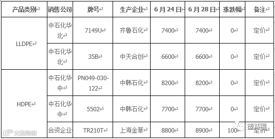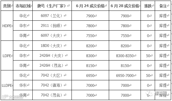 今日国内PE市场价格偏强震荡,调整幅度多在50-100元/吨左右。今日石化PE出厂价格部分继续上调,中石化华中、中油华东及中油华南等石化大区继续补涨部分PE出厂价格。周末缺少期货指引下,现货市场交投气氛一般,受到石化上调PE出厂价格支撑,商家心态暂稳,多随行就市出货为主。终端工厂整体询盘积极性一般,多随行就市出货为主。从供应方面来看,虽然端午小长假石化库存有所累积,但近期石化装置检修依然较多,后期石化供应有望继续减少。国内LLDPE主流市场价格在6900-7000元/吨;LDPE主流市场价格在7600-8200元/吨;HDPE膜主流市场价格在7550-8100元/吨。