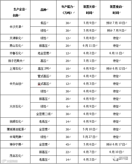 表3 PE石化停车检修统计